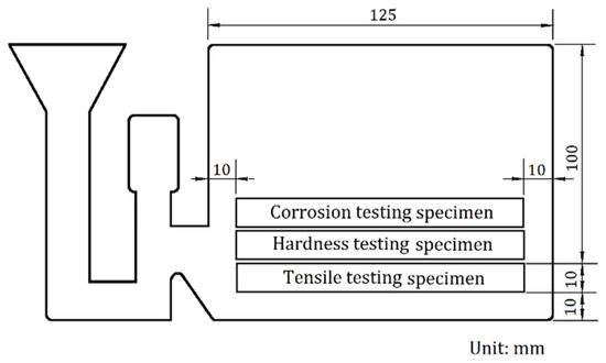 Sample position: The specimens were cut from casting by using a wire electrical discharge machine. The specimen position of the experimental alloys is shown in Figure 1.