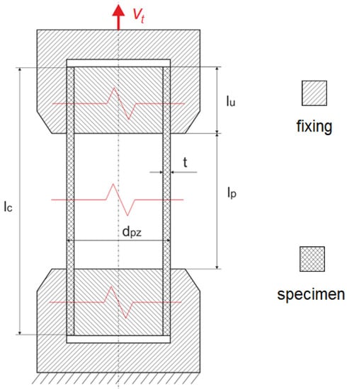 Metal cylinders (lu = 25.0 mm, diameter dependent on the tube inner diameter) were inserted in the ends of the specimens to prevent crushing of the specimens and to enable proper fixing in the machine grips (Figure 2). Therefore, the gauge length of each specimen was lp = 40.0 mm. The elongation process was assumed to be equal to 100%, and hence the displacement was equal to 40.0 mm.