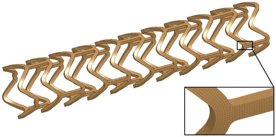 Finite element numerical analysis (FEA) is a valid and efficient method for investigating and optimizing the mechanical and interactive behavior of medical devices such as coronary stents [16]. Because of the complex geometry of the studied structures and the sophisticated nonlinear material properties of tissues, an advanced finite element approach is often the preferred simulation method [17]. FEA is relatively low-cost compared to experimental tests [18] and permits the determination of values that would be difficult or even impossible to obtain via empirical tests (e.g., the stress or strain rate in specific areas of the model) [19]. In addition, the ethical advantages of using FEA, which obviates the need for extensive tests on humans or animals, are significant.
