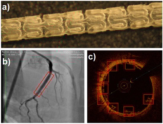 Heart disease is a leading cause of hospitalization and death worldwide (33% of all deaths) [1]. The dissemination of percutaneous coronary intervention (PCI) as the preferred method for revascularization (which relieves narrowing) has revolutionized the treatment of ischemic heart disease (IHD) over the past 20 years [1]. PCI is an effective and less aggravating alternative to coronary artery bypass grafting (CABG). PCI usually includes stent deployment to prevent acute recoil and vessel closure during the first months after the procedure [2]. Coronary stents are tube-shaped scaffolds designed to decompress to a certain diameter during angioplasty [3]. Metallic stents are accepted as the standard in interventional cardiology [4]. Despite high effectiveness and a relatively low complication risk, PCI is still not an ideal technique. Its main disadvantage is the implementation of a permanent metal prosthesis in the vessel wall, which can lead to potential inflammation, late-stent thrombosis, neoatherosclerosis, and restenosis [5,6].