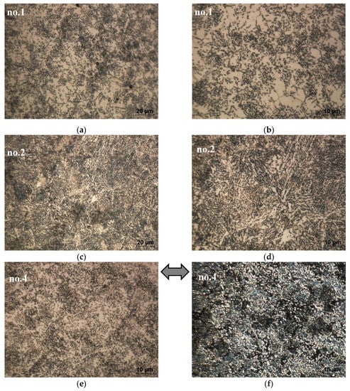 3.1.1. Microstructures’ Development Owing to Heat Treatment
