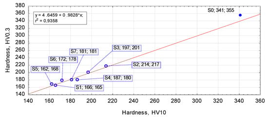 Hardness of as-received (S0) and annealed (S1–S7) samples.