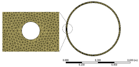A commercial tube with 20 inch in diameter and 0.5 inch (0.0127 m) in thickness was modelled for this stage with the following boundary conditions: Case 1a considers three different external load temperatures; T1 = −30 °C, T2 = 22 °C, and T3 = 50 °C applied on the external face of the tube to create contraction or dilatation and the solution is carried out with the ANSYS® 2020 R1 Thermal analysis module. The results of this analysis are loaded in the static structural module to include the effect of the applied pressure creating a thermal-structural coupled field analysis. For each selected temperature, the tube is subjected to an internal pressure P of 10, 90 and 180 PSI as shown in Figure 8a. The right side of the tube was restricted in such a way that the coordinate displacements are: x = 0, y = 0 and z = 0. Case 1b, considers also the mentioned operation conditions of temperature and pressure as in the previous case plus the presence of a 200µm cavity located on the opposite side of the displacement restriction as shown in Figure 8b. This case considers the same pressure magnitude applied inside the cavity (pc) and the tube (pt). Case 1c, considers the same model of previous case without the presence of the pressure in the tube, pt is eliminated. The model required sliced areas to create results paths, the paths were used to read the results always in the same nodes for the x and y coordinates as shown in Figure 8c.