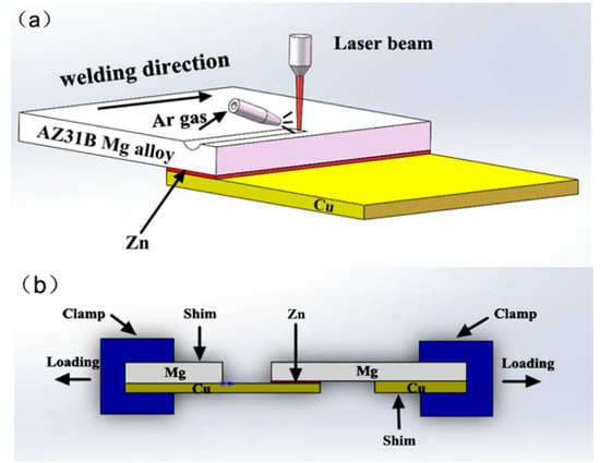 In many engineering applications, multiple metals are required [1,2]. For example, Mg and Cu alloys are widely used in the aerospace, automobile, and manufacturing industry. Mg and Mg alloys have a low density, high specific strength, good heat dissipation, lightweight, and so on [3,4,5], whereas Cu and Cu alloys have good electrical conductivity, thermal conductivity, and heat dissipation [6,7,8]. The hybrid structure of Mg/Cu dissimilar materials not only satisfies the requirements of electric conductivity, thermal conductivity, and corrosion resistance but also meets the demand for lightweight. Since Mg/Cu hybrid structure have many researches and applications [9,10,11], it is crucial to study the Mg/Cu welded joints [12].
