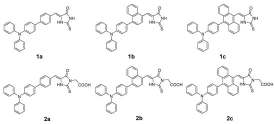 The following are available online at https://www.mdpi.com/1996-1944/13/9/2065/s1, Tables S1–S6: Table S1 Cartesian coordinates of the optimized structure of 1a in the ground state; Table S2 Cartesian coordinates of the optimized structure of 1b in the ground state; Table S3 Cartesian coordinates of the optimized structure of 1c in the ground state; Table S4 Cartesian coordinates of the optimized structure of 2a in the ground state; Table S5 Cartesian coordinates of the optimized structure of 2b in the ground state; Table S6 Cartesian coordinates of the optimized structure of 2c in the ground state.