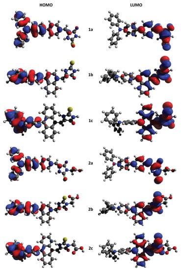 Visualization of HOMO and LUMO orbitals calculated for the examined molecules.