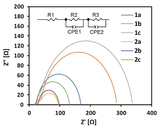 Electrochemical impedance spectra were recorded under standard AM 1.5G simulated solar irradiation, obtained from Sun 2000 class A solar simulator (ABET Technologies, Milford, CT, USA). The frequency was measured on Autolab PGSTAT 302N (Metrohm) equipped with the FRA32 module, in the range from 0.1 Hz to 100 kHz, under VOC forward bias conditions, and with VAC = 10 mV.