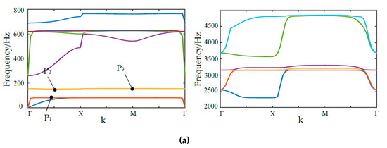 - Goffaux, C.; Sánchez-Dehesa, J. Two-dimensional phononic crystals studied using a variational method: Application to lattices of locally resonant materials. Phys. Rev. B 2003, 67, 144301. [Google Scholar] [CrossRef]
