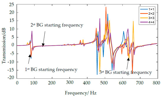 - Liu, M.; Xiang, J.W.; Zhong, Y.T. The band gap and transmission characteristics investigation of local resonant quaternary phononic crystals with periodic coating. Appl. Acoust. 2015, 100, 10–17. [Google Scholar] [CrossRef]