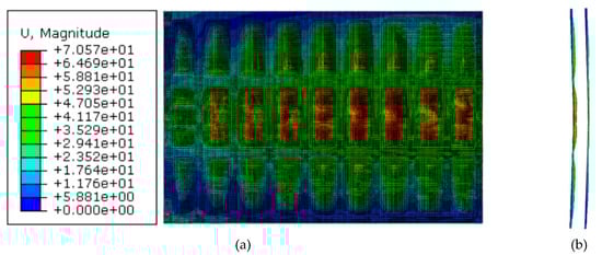In addition, the Johnson–Cook dynamic failure model is supplied by Abaqus/Explicit []. The failure is assumed to happen when the damage parameter ω exceeds 1. The damage parameter is defined as: