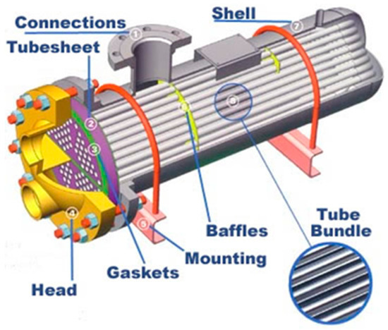 Grade 2 is the most widely used material in heat exchangers [68,69]. Its combination of strength, weldability, formability, and corrosion resistance make it the “explicitly preferred” grade [70]. It is typically used as welded and seamless tubing in shell and tube heat exchangers [66] (Figure 19).
