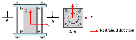 In this test, the frost resistance of concrete was determined according to the JIS A 1148 [15] with dimensions of 75 75 400 mm3 under the free and restrained conditions (Figure 2). The fundamental transverse frequency and the mass loss change of the specimens were measured within 300 cycles. The resistance of concrete to freeze–thawing was evaluated by calculating the value of the relative dynamic modulus of elasticity (RDM), as given in Equation (4). The specimens are often considered as frost damage when the RDM value is less than 60%.