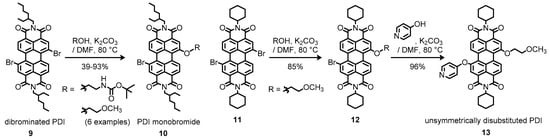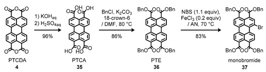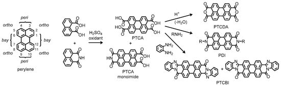- Nowak-Król, A.; Würthner, F. Progress in the Synthesis of Perylene Bisimide Dyes. Org. Chem. Front. 2019, 6, 1272–1318. [Google Scholar] [CrossRef]