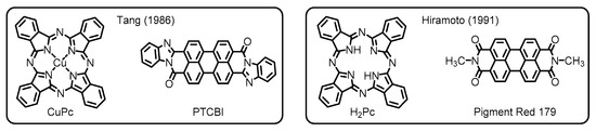 - Mishra, A.; Bäuerle, P. Small Molecule Organic Semiconductors on the Move: Promises for Future Solar Energy Technology. Angew. Chem. Int. Ed. 2012, 51, 1433–7851. [Google Scholar] [CrossRef]