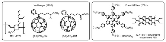 - Yu, G.; Gao, J.; Hummelen, J.C.; Wudl, F.; Heeger, A.J. Polymer Photovoltaic Cells: Enhanced Efficiencies via a Network of Internal Donor-Acceptor Heterojunctions. Science 1995, 270, 1789–1791. [Google Scholar] [CrossRef]