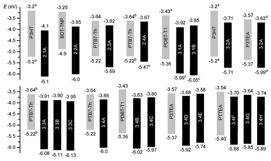 - Wadsworth, A.; Moser, M.; Marks, A.; Little, M.S.; Gasparini, N.; Brabec, C.J.; Baran, D.; McCulloch, I. Critical Review of The Molecular Design Progress in Non-Fullerene Electron Acceptors Towards Commercially Viable Organic Solar Cells. Chem. Soc. Rev. 2019, 48, 1596–1625. [Google Scholar] [CrossRef]