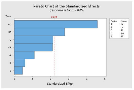 The Pareto chart for Sa is shown in Figure 5, for α = 0.05.