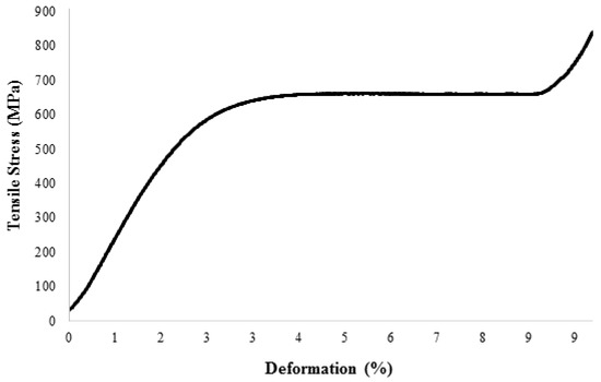Results of uniaxial tensile tests of Ti–28Nb–5Zr wire after annealing at 800 °C for 1 h in vacuum.
