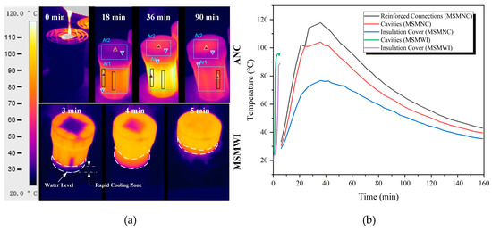 (a) Mold thermal images; (b) temperature curves of multishell molds by air natural cooling (MSMNC) and MSMWI.