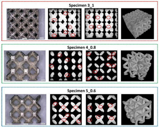 Sample images of structural analysis of lattice structure specimens with the use of CT.