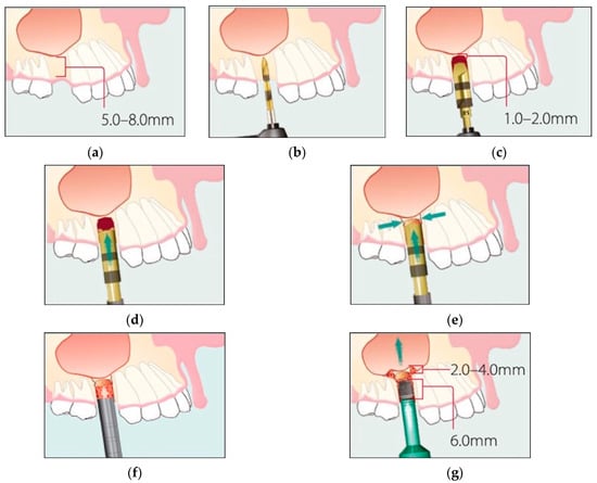 - Summers, R.B. The osteotome technique: Part 2—The ridge expansion osteotomy (REO) procedure. Compendium 1994, 15, 422–436. [Google Scholar] [PubMed]
