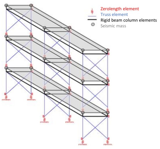 According to the prescriptions provided in ASCE 7 [45], during the tests, floors behaved rigidly in their plane; indeed, the diaphragm model employed infinite rigid vertical and horizontal beam column elements. Moreover, since the motion of shake table was unidirectional, the motion in the other degree of freedom was restrained in the model.