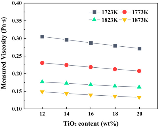 The viscosity of blast furnace (BF) slag with different TiO2 contents.