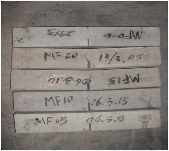 The failure patterns of three-point bending specimens with different VF are compared, as shown in Figure 4 and Figure 5.