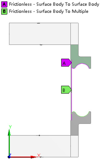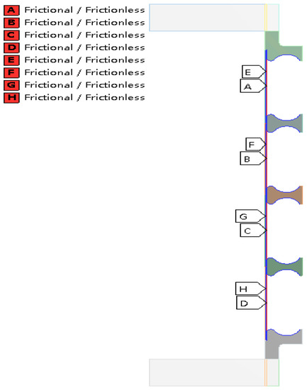 Multi-layer and multi-wave bellows are widely used in engineering. In order to provide references for the hydroforming of these bellows. The hydroforming process of a two-layer and four-wave toroidal bellows was also simulated in this section. The dimensional and material parameters and the constraint conditions of this two-layer and four-wave toroidal bellows are the same as the above monolayer and single-wave bellows. In order to figure out the effect of friction between layer to layer and layers todies, both frictional (friction coefficient is set to be 0.15) and frictionless contacts are applied as shown in Figure 12.