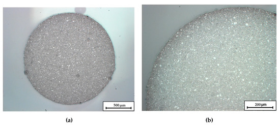 Figure 1 shows an optical micrograph image of a filament cross section. Besides the sufficient roundness for the continuous feed into the printer, the images reveal a homogeneous dispersion of the ceramics within the filament.