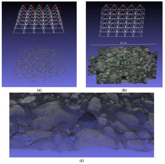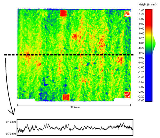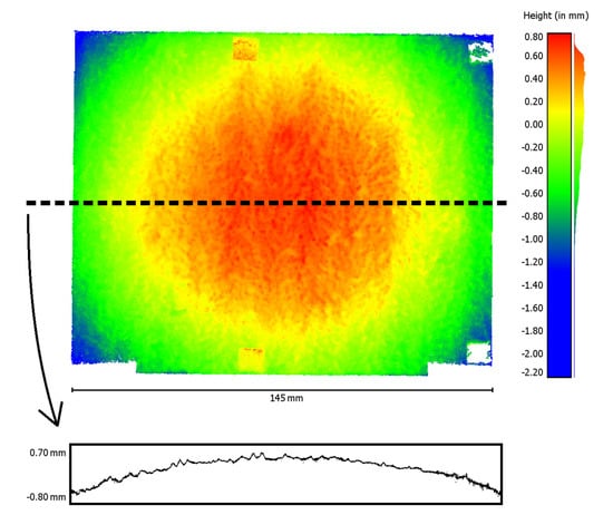 In our prior research, we have conducted feasibility studies for the determination of the surface roughness of concrete using photogrammetry [31]. In the measurement setup, a digital single-lens reflex camera (DSLR) with a macro-objective lens was used in order to capture the surface of a particular concrete specimen. The reconstructed point cloud is visualized as a height map, showing the peaks and valleys of the concrete surface.