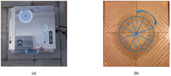 The assessment of the macrotexture of the concrete slabs was performed by measuring the MPD parameter with the circular texture meter in accordance with ASTM E2157-15 (2019) [56] (Figure 5a). Due to the fact that the CTM scans the profile along a perimeter divided into 8 segments, in the cases of slabs with directional texturing (Bud, BrD, TT, LT), the MPD values were read only from the appropriate parts of the tested surfaces (Figure 5b).