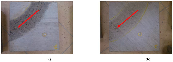 The dimensions of the test slabs were 35 cm × 35 cm × 5 cm. They were compacted on a vibrating table. Six slabs were made for each texturing technique, of which four were randomly selected for testing. Each of the slabs was prepared in a separate technological process.