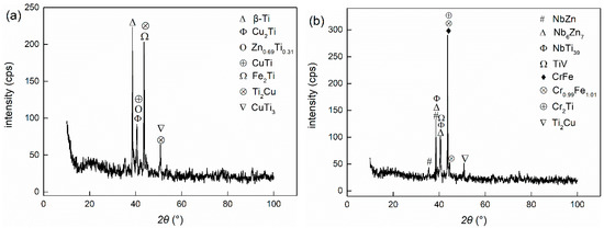 X-ray diffraction analyses of different brazing joints: (a) Type I (2 kA); (b) Type II (3 kA).