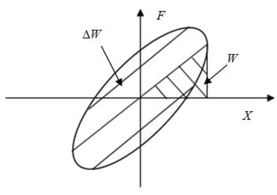 In the dynamic test with sinusoidal displacement as the excitation load, the hysteresis loop directly reflects the load deformation correlation, and the energy dissipation capacity of the structure during loading and unloading can be obtained. In addition, the hysteresis loop reflects the damping characteristics of the material, and the area surrounded by the hysteresis loop represents the energy absorbed by the structure in one period. In this study, the restoring force signal of the LCDS under sinusoidal excitation was recorded, and the energy dissipation and maximum elastic potential energy for a stable period were obtained. Finally, the equivalent energy dissipation factor of the LCDS was calculated to effectively characterize the damping characteristics of the structure. Figure 8 demonstrates the hysteresis loop, the energy dissipation in a stable period, and the maximum elastic potential energy of the system.