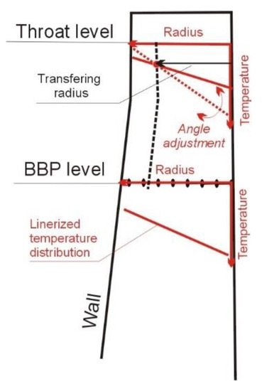 Firstly, an average gas temperature at the BBP level (10), linear dependence of the temperature distribution on the radius (11) and reference radius by which the transfer will take place are determined (12).