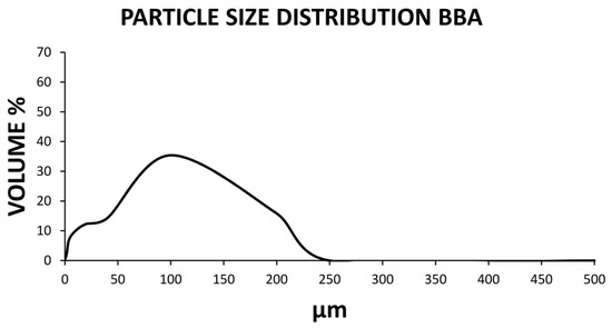 Graph of the laser granulometry of the sieved BBA by a 0.25 mm sieve.