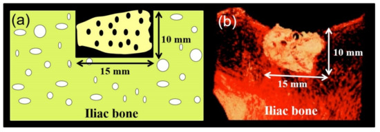 - Kabir, M.A.; Murata, M.; Akazawa, T.; Kusano, K.; Yamada, K.; Ito, M. Evaluation of perforated dentin scaffold on bone regeneration in critical-size sheep iliac defects. Clin. Oral Implants Res. 2017, 28, e227–e235. [Google Scholar] [CrossRef] [PubMed]