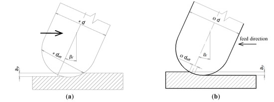 - Kita, Y.; Furuike, H.; Kakino, Y.; Nakagawa, H.; Hirogaki, T. Basic study of ball end milling on hardened steel. J. Mater. Process. Technol. 2001, 111, 240–243. [Google Scholar] [CrossRef]