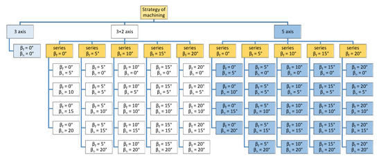 - 3 + 2-axis milling—constant tilt relative to the orientation of the surfaces, βf—pulled tool, βn—tilt in pick feed direction. It consists of 24 samples.
