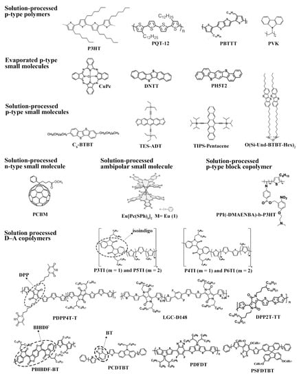 - Reese, C.; Bao, Z. Organic single-crystal field-effect transistors. Mater. Today 2007, 10, 20–27. [Google Scholar] [CrossRef]