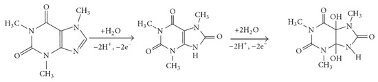 Caffeine electrochemical oxidation mechanism.
