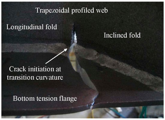 Bridges subjected to repeated loadings during service may suffer problems due to fatigue induced degradation of resistance. Recently, the vulnerability of web-to-flange welded details connecting trapezoidal profiled web and flange plate has been recognized in several fatigue experimental tests of full-size girders and welded joints under flexural bending or tension []. The weld toe points connecting the longitudinal fold and the inclined fold of the trapezoidal profiled web are prone to cause cracks on the tension flange. Accordingly, the authors have proposed several methods in the retrofit and improvement of such welded details using CFRP laminates and shot peening onto the tension flanges joining corrugated steel webs [,]. Recently, the authors have also investigated the fatigue behaviour of slender webs under in-plane loading in excess of the buckling load. It was found that the fatigue cracks due to predominant shear action propagate much faster than these formed due to combined shear and tearing between the boundary of the tension diagonal and the subpanel of the trapezoidal profiled web [,].