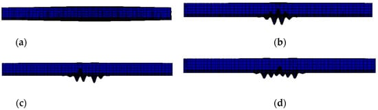 Summary of typical four mode shapes of vibration. (a) 1st mode shape of vibration. (b) 2nd mode shape of vibration. (c) 3rd mode shape of vibration. (d) 4th mode shape of vibration.