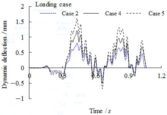 Comparison of dynamic deflection with varied overload cases (Case referring to Table 2).