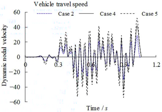 Comparison of nodal dynamic velocity with varied overload cases (Case referring to Table 2).