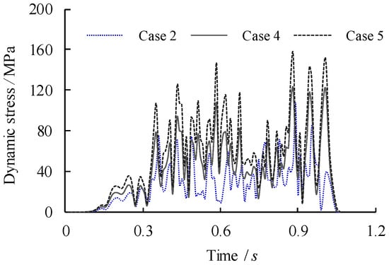 Comparison of dynamic stress of point B with varied overload cases (Case referring to Table 2).