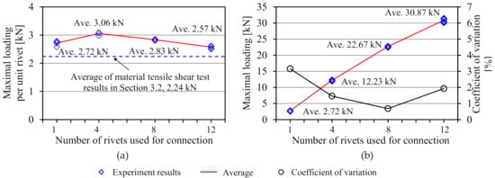 Experiment result. (a) Maximal loading; (b) maximal loading per unit rivet.