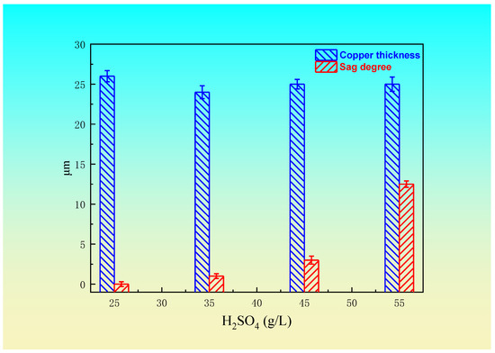 Effect of the copper sulfate concentration on the sag degree and copper thickness.
