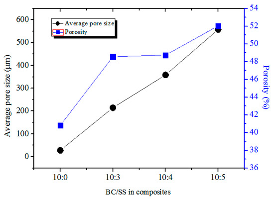 Average pore size and porosity of the composites with different BC/SS.